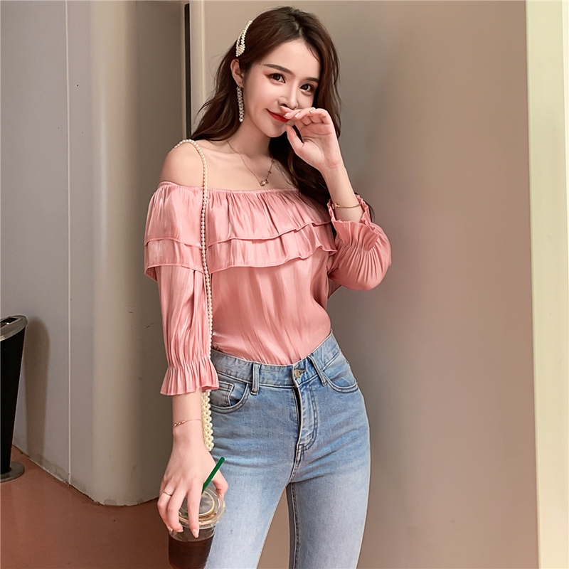 Off The Shoulder Long Sleeve Blouse Shirt Women Lantern Sleeve
