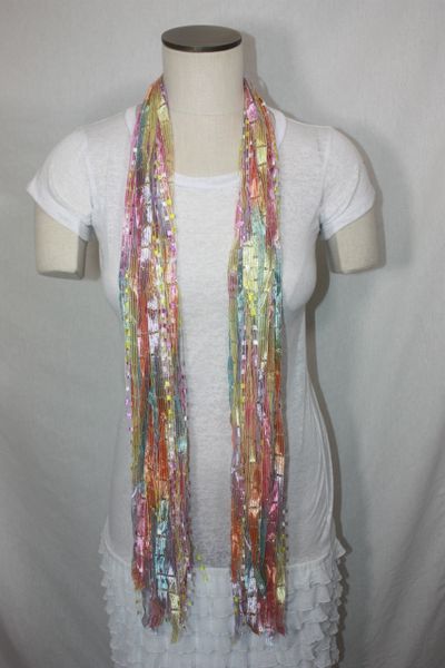 Pink Orange Yellow Aqua And Blue Ribbon And Ladder Yarn Scarf