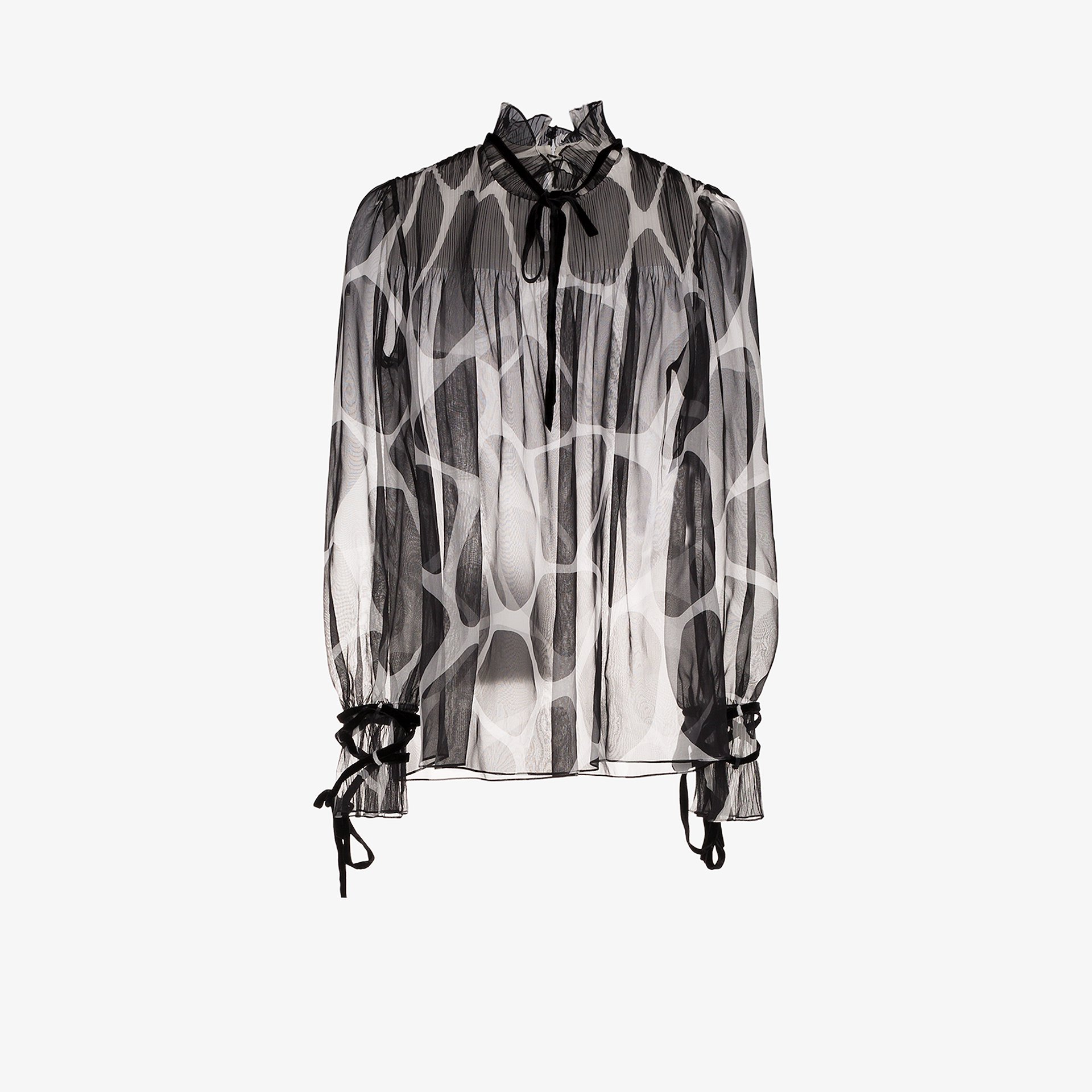 Valentino High Neck Tie Cuff Printed Blouse Browns