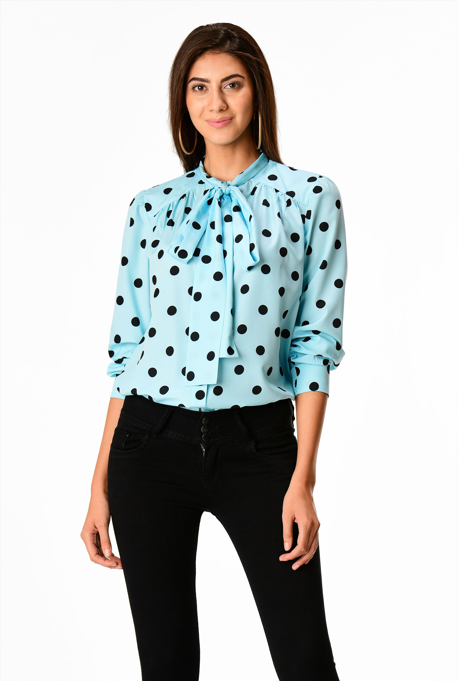 Tie Neck Polka Dot Print Crepe Blouse Women S Clothing 0 36w At