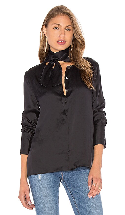 Equipment Leema Silk Tie Neck Blouse In True Black Revolve
