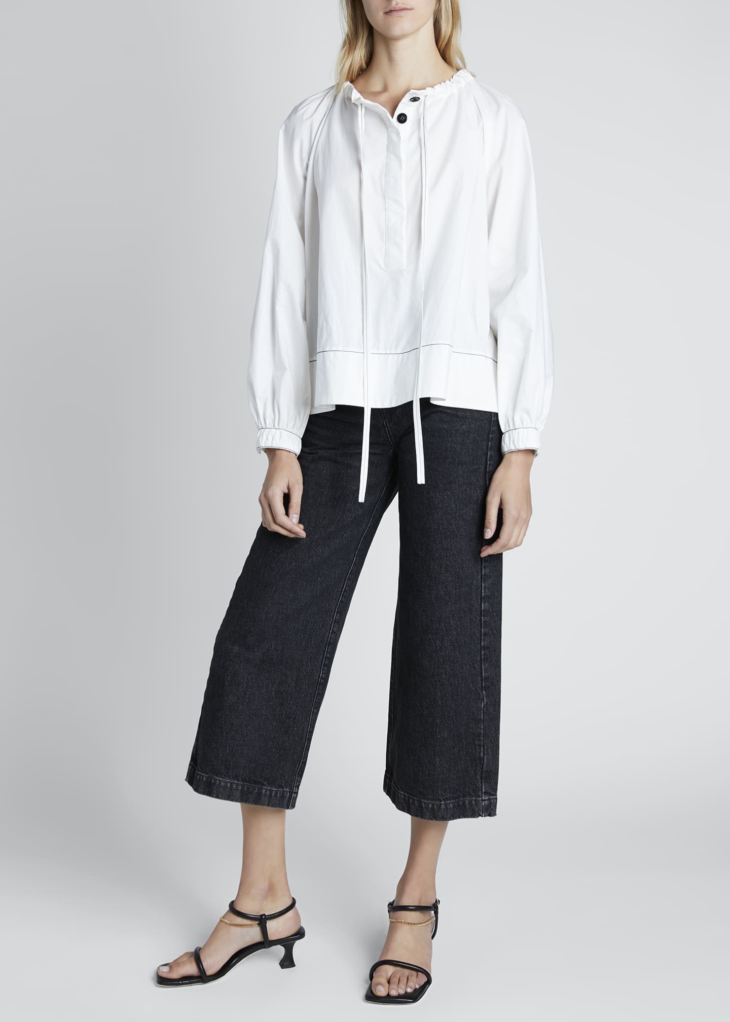 Proenza Schouler White Label Long Sleeve Cotton Tie Neck Blouse