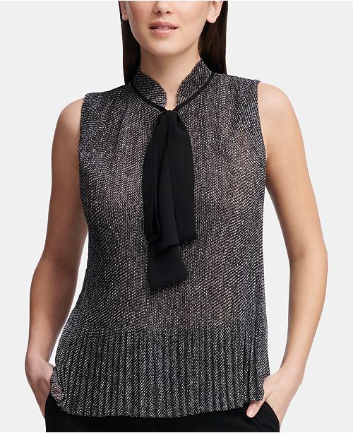 Dkny Pleated Tie Neck Top Reviews Tops Women Macy S