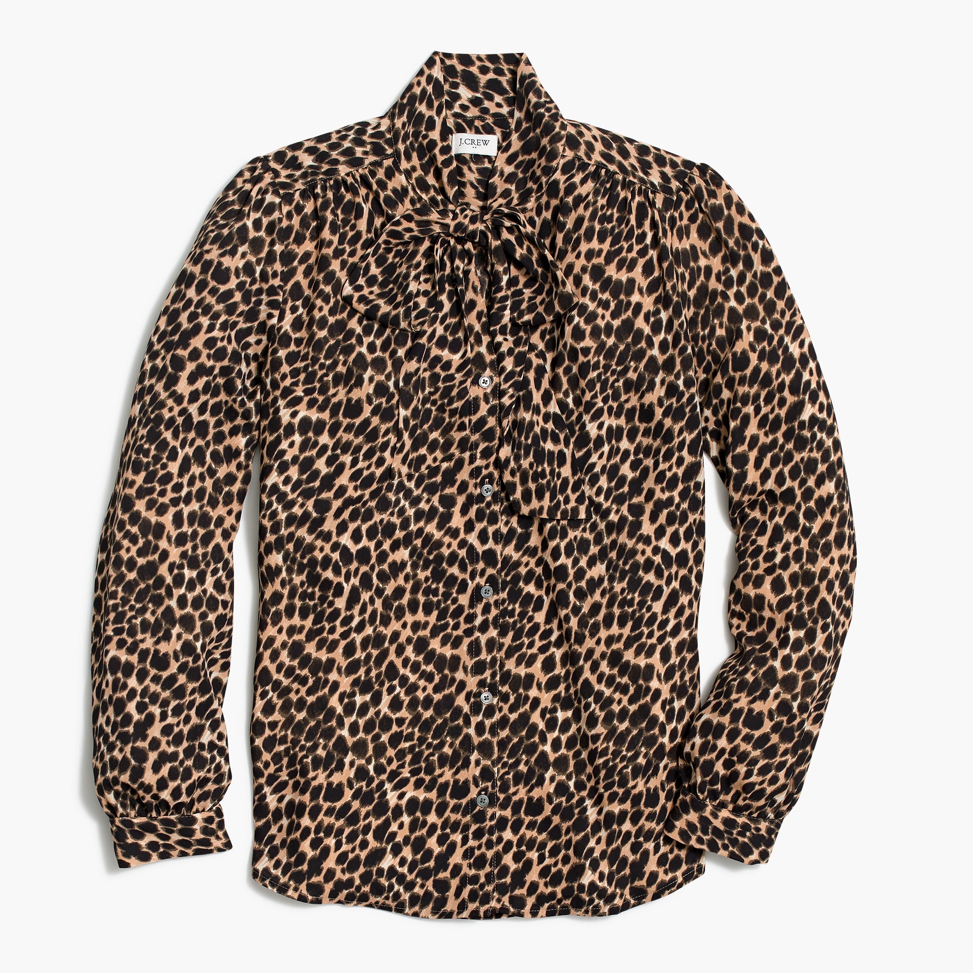 J Crew Factory Long Sleeve Leopard Drapey Tie Neck Top