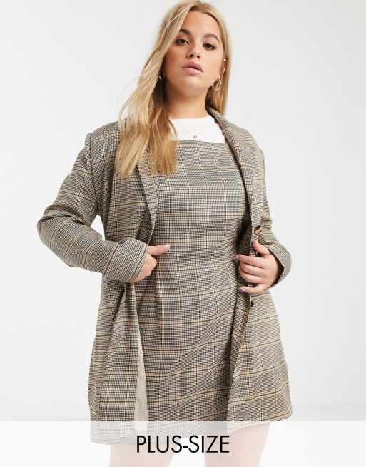 Plus Size Brown Heritage Plaid Blazer Dress Missguided