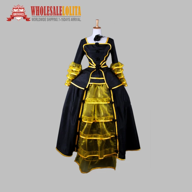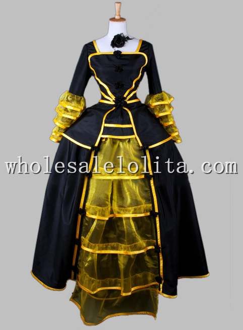 Luxury Noble Black And Yellow Gothic Victorian Era Dress Ball Gown