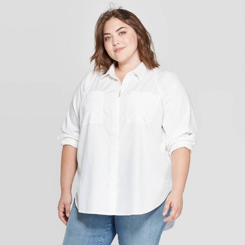 Women S Plus Size Long Sleeve Collared Boyfriend Shirt Universal