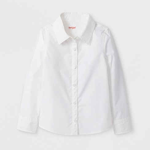 Girls Unique Pot Embroidered Long Sleeve White Simple Button Down