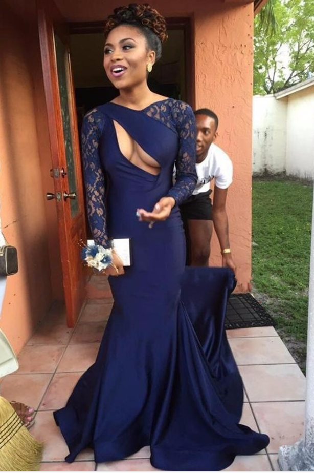 2019 Evening Dress Mermaid Prom Dress Navy Blue Prom Dress Lace