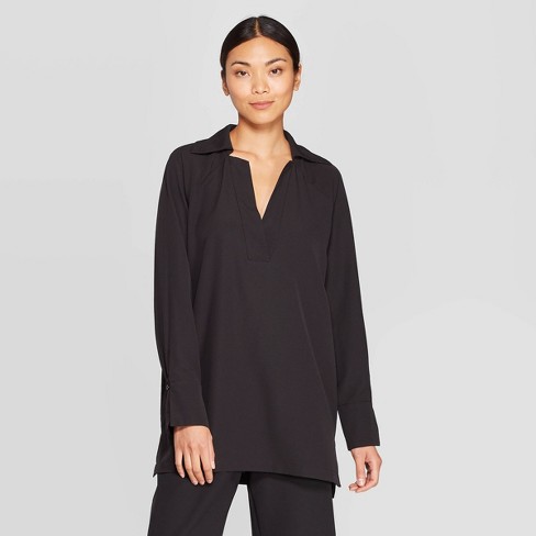 Women S Long Sleeve Deep V Neck Exaggerated Collar Tunic