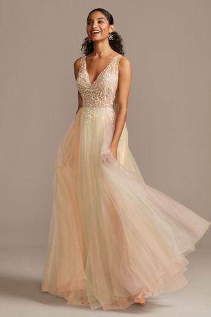 Embellished Illusion Multi Color Tulle Ball Gown David S Bridal