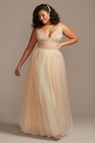 Embellished Illusion Multi Color Plus Size Gown David S Bridal