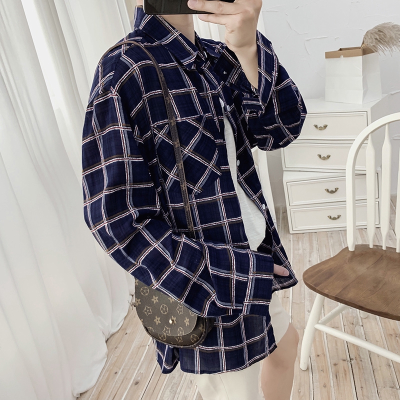 Korean Fashion Loose Retro Red Plaid Shirt Female Long Sleeved
