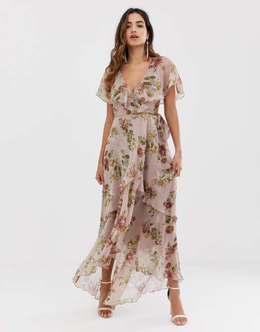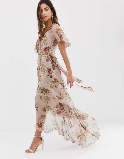 Design Maxi Dress With Cape Back And Dipped Hem In Light Floral