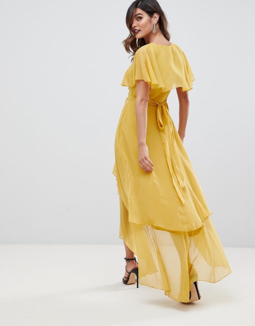 Asos Design Maxi Dress With Cape Back And Dipped Hem Yellow