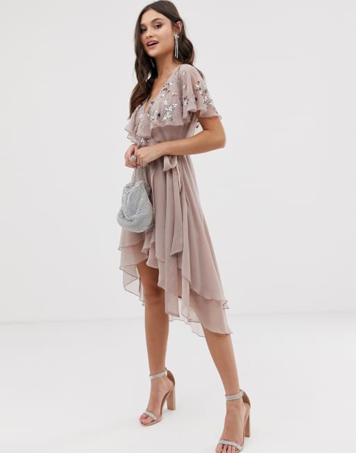 Asos Dresses Mink Cape Back Dipped Hem Midi Dress Poshmark