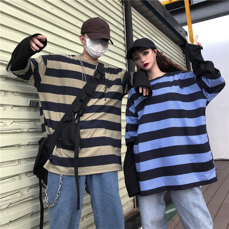 Korea Loose Autumn New Womens Clothing Chic Striped Ulzzang Tops