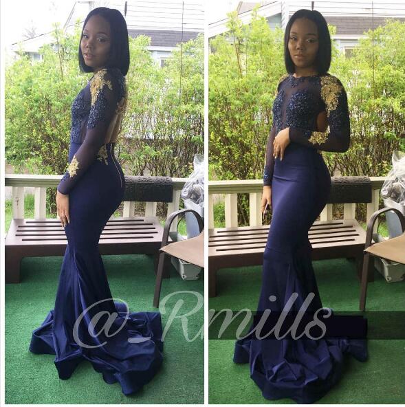 Navy Blue Prom Dresses South African Black Girls Appliques Formal